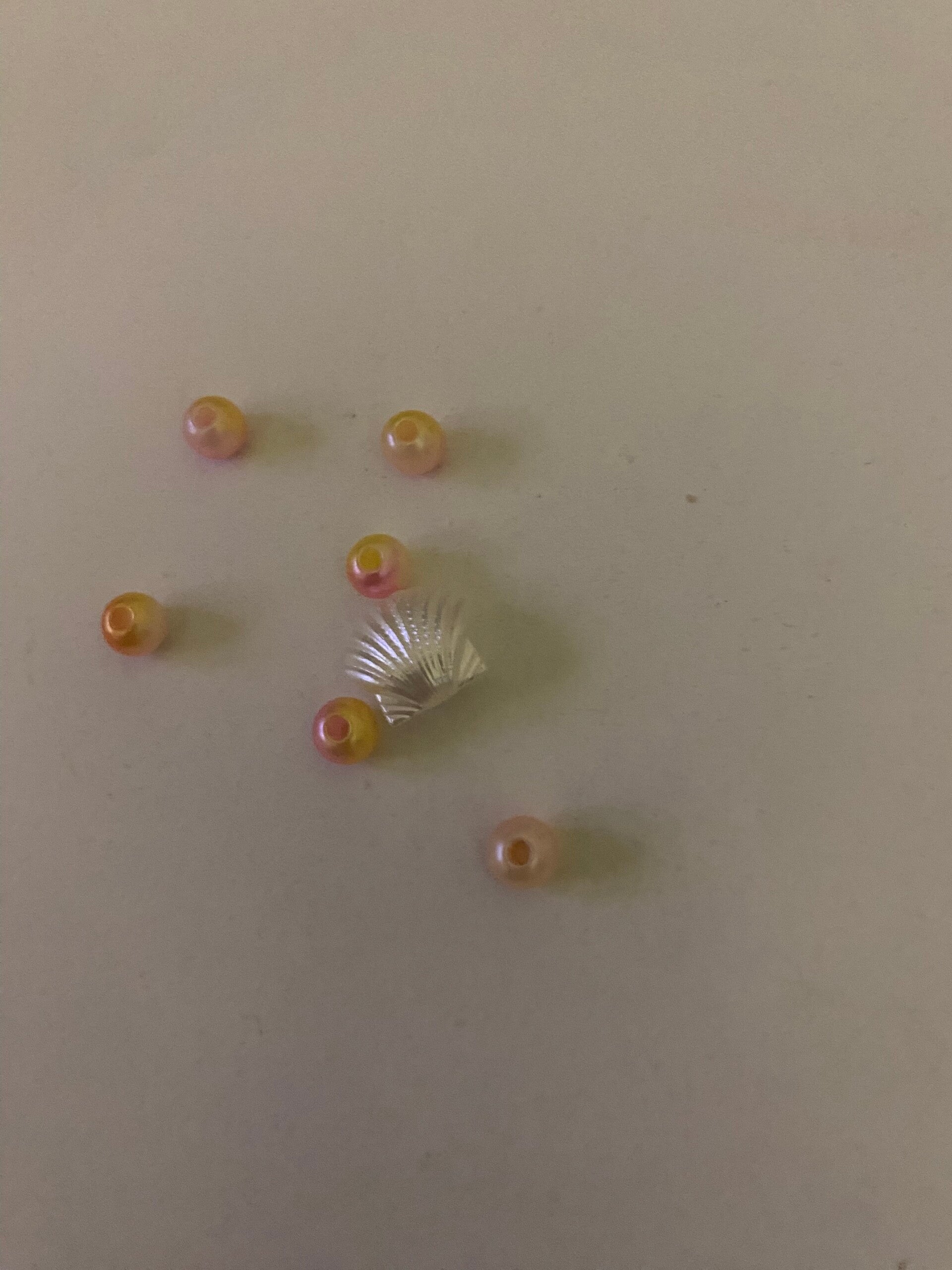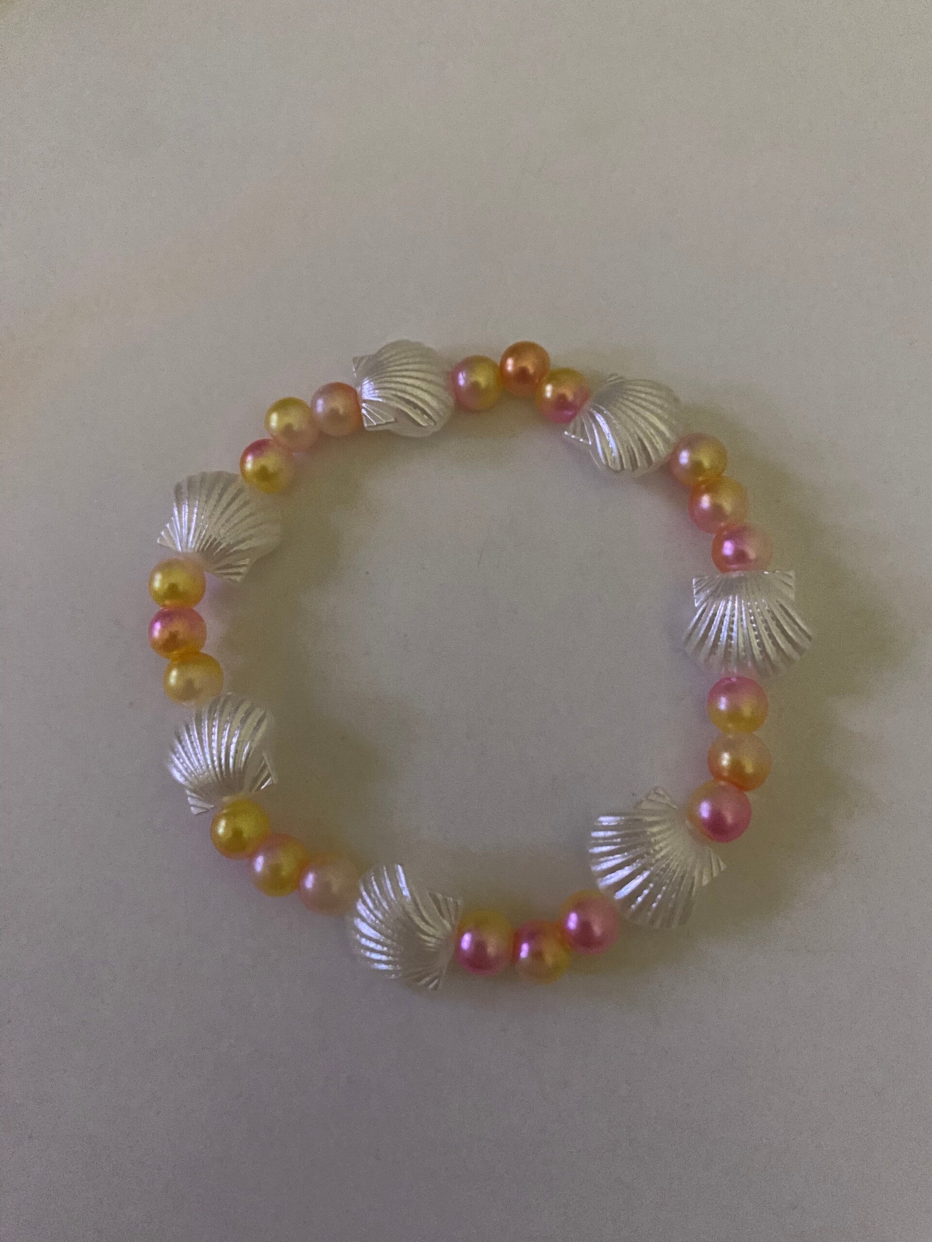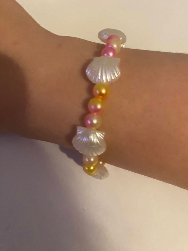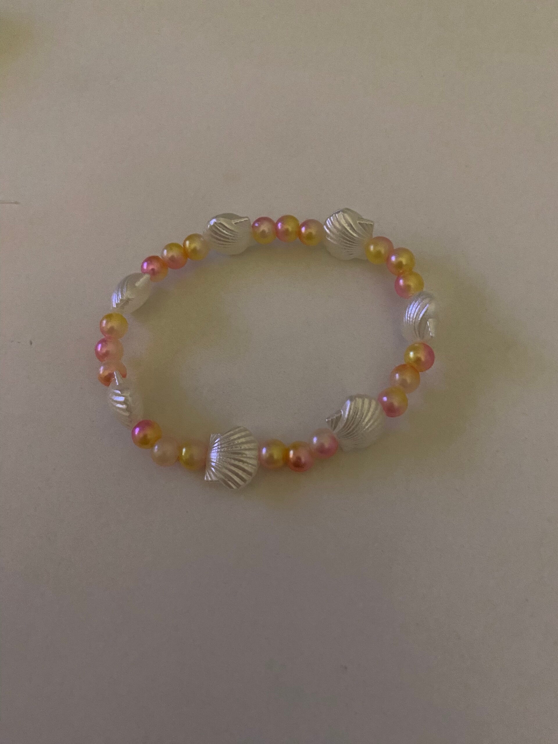 Beautiful sunset coloured bracelet with faux pearl shells to remind you of sunny days at the beach! ☀️🌅