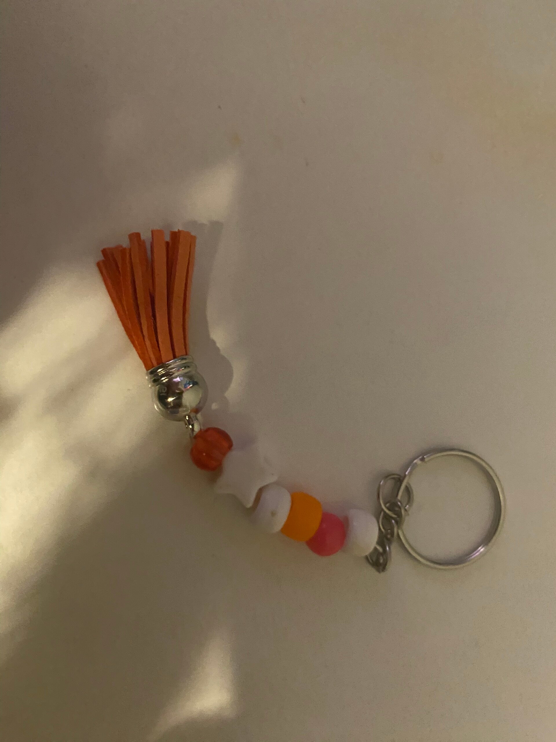 Beautiful keyring in white, pink and orange with a lovely pink tassel to really make the colours pop 💖